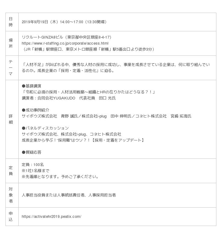 パーソルテンプスタッフ、ビースタイル、リクルートスタッフィングが連携~ 採用・定着をテーマにした第一回イベント 9月19日(木)開催~
