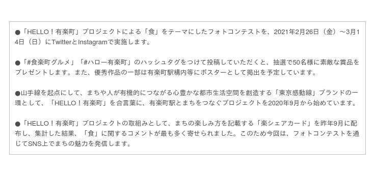 ハロー有楽町「#食楽町グルメ」フォトコンの開催