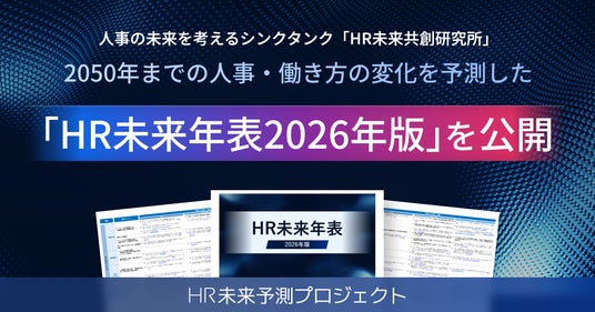 株式会社プラスアルファ・コンサルティング(本社:東京都港区、代表取締役社長:三室克哉 証券コード:4071)は、人事の未来を考えるシンクタンク 「HR未来共創研究所」 から、「HR未来年表 2026年版」 を発刊しました。本年表は、2025年から2050年までマクロ動向、技術革新、産業構造、価値観・ライフスタイルの変化といった企業経営に影響を及ぼすテーマに関わる未来予測を52の基本トレンドと400の未来シナリオにまとめ、企業の持続的な成長を支えるための人事戦略の立案・実行に寄与するレポートとなっています。