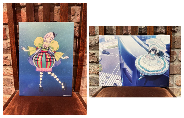 本商品は、絵画用の高品質キャンバス(サイズ:F4号)に、オリジナル短編アニメーション『Artiswitch』の印象的な場面を高精細印刷で再現しています。キャンバスボード『ニーナ』は、第1話にてお客さんのハルカを魔法空間へ誘った際に披露したニーナの変身シーンをピックアップ、キャンバスボード『るる』は、第4話にて、るるが原宿の商業施設の屋上に無断で立ち入り物思いに耽る印象的なシーンを、それぞれピックアップしています。