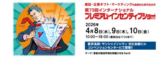 株式会社ビジネスガイド社は4月8日(水)~10日(金)、販促・企業ギフト・マーケティングの専門見本市「第73回インターナショナル プレミアム・インセンティブショー春2026」(PIショー)を、東京・池袋のサンシャインシティ文化会館ビルで開催します。テーマは「革新が販促市場を飛躍させるPartII」。これからの販売促進、時代をリードしていく販促グッズ・サービスを発信します。ご来場お待ちしています。