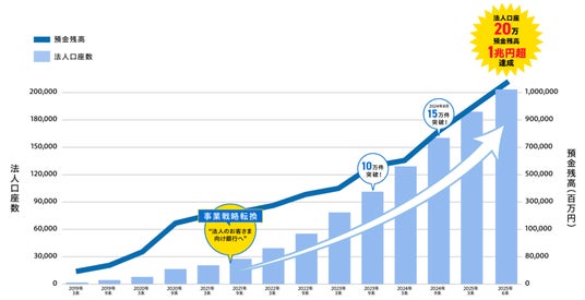 GMOあおぞらネット銀行株式会社(以下、当社)は、2025年6月、当社の法人口座開設数が20万、預金残高が1兆円を超え、インターネット専業銀行としての大きな節目を迎えました。