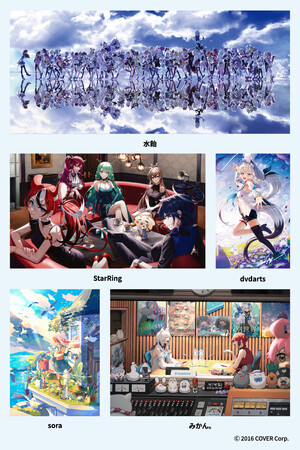 本画集に掲載されているイラストには、表紙の3名のほか、星街すいせい、兎田ぺこらなど国内のタレントはもちろん、がうる・ぐら、森カリオペなど全世界で活躍しているホロライブの女性タレントが登場しています。