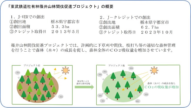 東京スカイツリーは、東武グループが進める「環境保全への取り組み」の観点から、東武鉄道が実施している「東武鉄道 社有林篠井山林間伐促進プロジェクト」を通じてJ-クレジット制度で認証されたJ-クレジットおよびJ-VER※を購入し、CO2換算で「300t-CO2」分のクレジットを2024年3月19日 (火)に取得しました。
