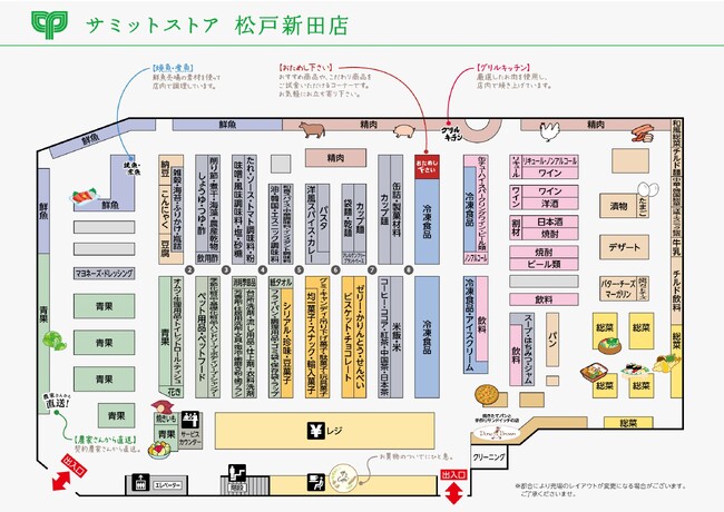 2007年に開店して以来、多くのお客様にご愛顧いただいている「サミットストア松戸新田店」「コルモピア松戸新田店」が、2023年11月1日(水)に改装オープンしました。今回の改装では、青果売場に「フレッシュサラダ&カットフルーツ」コーナーを新設。お酒と冷凍食品の売場も新しくなり、セルフレジを導入して精算がよりスムーズになりました。隣接する衣料館「コルモピア」はレイアウトを変更し、100円均一店の「ワッツ」が別棟より移設して更に便利になりました。