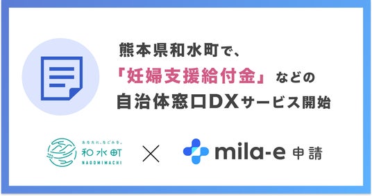 自治体向けサービスを開発する株式会社ミラボ(本社:東京都千代田区、代表取締役:谷川一也、以下「ミラボ」)は、自治体窓口DXサービス「mila-e(ミライー) 申請」の熊本県 和水町への提供が決定し、2026年4月1日より運用を開始しました。