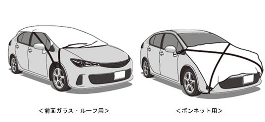 ・乗用車の前面ガラス・ルーフやボンネットに装着できる「雹カバー」を配布します。