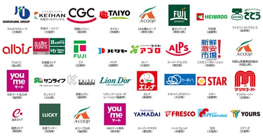 持続可能な社会の実現への想いに賛同いただいた多くの企業様と協働を開始し、使用済み食品トレー・ペットボトルの回収強化や環境教育活動を進めてまいりました。 2022年11月に中国シジシー様と行った初めての協働宣言から約3年半、2026年3月2日に協働宣言の取り組み店舗数が、5,000店舗に達しました。各地域を代表する企業様との連携により、リサイクルの輪は着実に日本全国へと広がっています。これまでに協働宣言を行った企業様は以下の通りです。