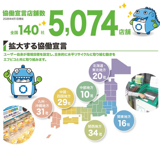 食品トレー・容器を製造する株式会社エフピコ(本社:東京都新宿区、代表取締役会長:佐藤 守正、以下「エフピコ」)と、全国のスーパーマーケットを中心とした小売企業が協働で推進する「ストアtoストア」の取り組み店舗数が、このたび全国5,000店舗を突破いたしましたのでお知らせいたします。