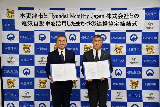 Hyundai Mobility Japan 株式会社(本社:神奈川県横浜市西区、代表取締役社長:七五三木 敏幸、以下ヒョンデ)は、2025年12月15日に千葉県木更津市と「電気自動車を活用したまちづくり連携協定」を、同年12月23日には千葉県君津市と「電気自動車を活用した災害時等における協力に関する協定」を締結しました。本協定に基づき、ヒョンデは2025-2026 日本カー・オブ・ザ・イヤーで「10ベストカー」に選出されたスモールEV「INSTER(インスター)」を、両市へ1台ずつ寄贈します。