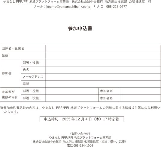 やまなしPPP/PFI地域プラットフォーム(事務局:山梨中央銀行、山梨県)は、地方公共団体におけるPPP/PFI事業の推進と、民間事業者の事業参画を支援するため、「PPP/PFIセミナー」を開催します。