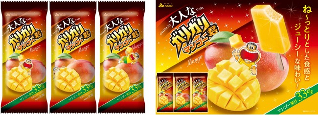 マンゴー果汁を33%使用し、氷のサイズも通常のガリガリ君より細かくすることでガリガリとした食感を抑え、マンゴー特有のねっとりとした食感とジューシーな味わいを表現した商品です。