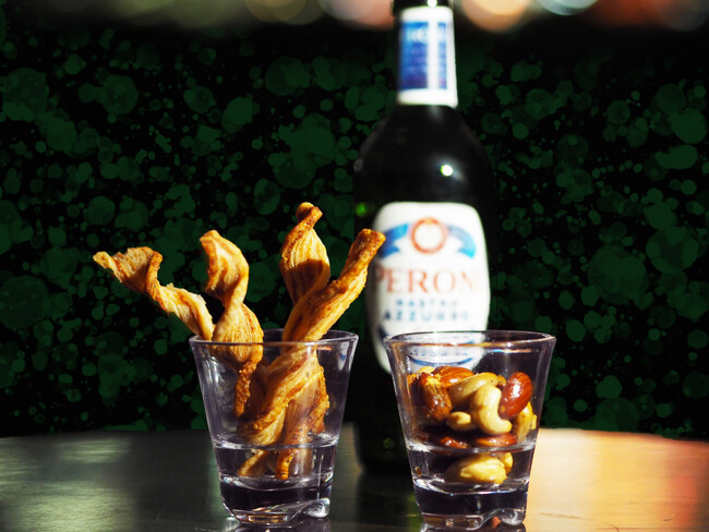 ・TOWERポテトサラダ ・オリーブ 、チーズパイ、スパイシーナッツ 各¥500