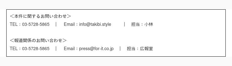 TAKIBI media:https://www.takibi-reservation.style/media/