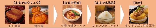 気持ちよく流れ出る汗はまるでサウナに入っているかのよう。激辛の出汁がしみ込んだ「おし豆富」や「餅巾着」を食べるとロウリュウのように発汗を促し、ラーメンをすすると熱波のようなインパクト。「レモンシャーベット」を挟むと水風呂に入ったような爽快感があり、「もっちりだし巻き玉子」で辛さを柔らげひと休憩。“ととのう”鍋はまるで食べるサウナです。※レモンシャーベットはお一人様一品サービスのデザートで選べます。