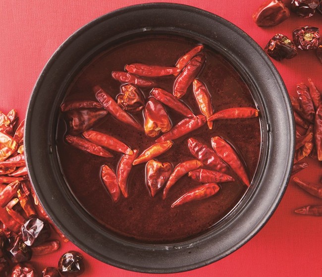 梅雨のジメジメとした時期や、暑い夏こそ無性に食べたくなる“辛グルメ”。唐辛子などのスパイスは発汗作用があり、暑さで上がった体温を下げるといわれています。激辛料理で汗をかき、肉をたくさん食べるスタミナ”夏鍋”として「灼熱火鍋」を販売します。世界一辛い(※2017ギネス認定)キャロライナリーパーや、華やかな香りがする朝天唐辛子を使用した灼熱火鍋出汁。アサリの旨味、味噌のコク、にんにくの風味を加え、さらに山椒を入れることで辛さに深みが増しました。