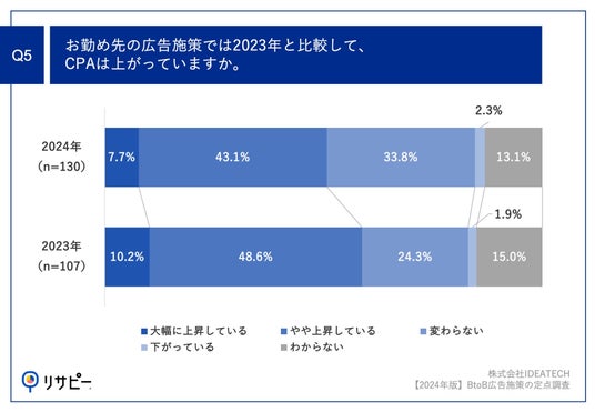 ~半数以上が、2023年よりも「広告施策のCPAの上昇」を実感~