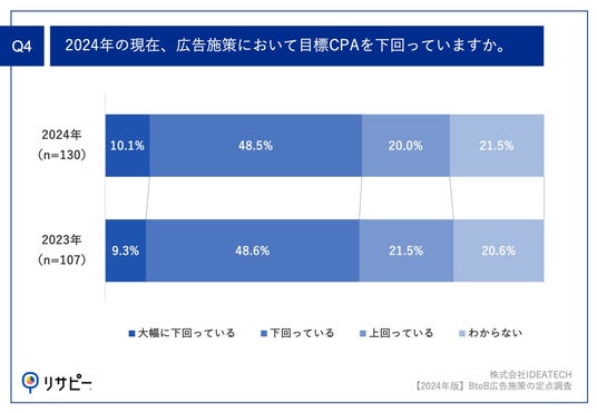 Q4.2024年の現在、広告施策において目標CPAを下回っていますか。