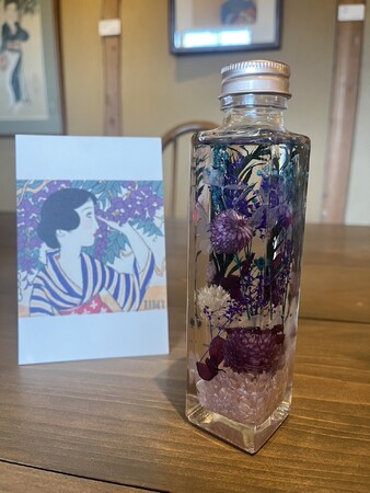 夢二の描いた作品のような色のお花を使って、手作りハーバリウム体験をしてみませんか。