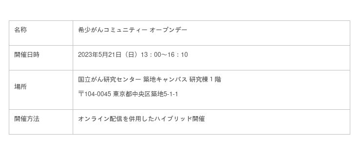国立がん研究センター中央病院 MASTER KEYプロジェクト一般社団法人日本希少がん患者会ネットワーク主催