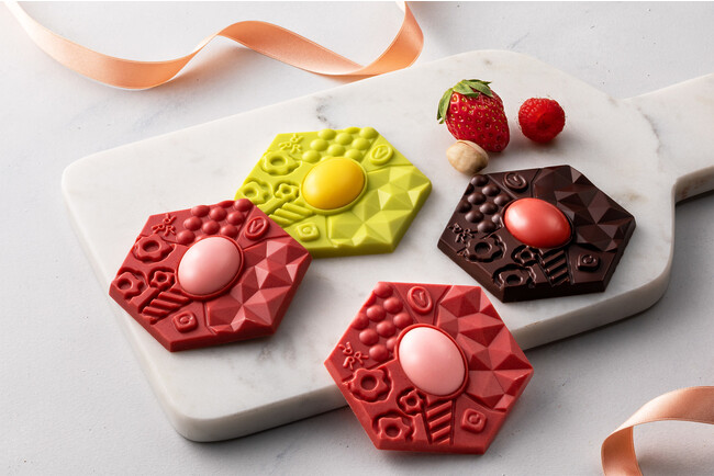 コンフィチュール入りの宝石ショコラをあしらった、華やかな香りあふれるオリジナルのタブレットショコラ。