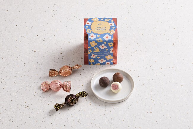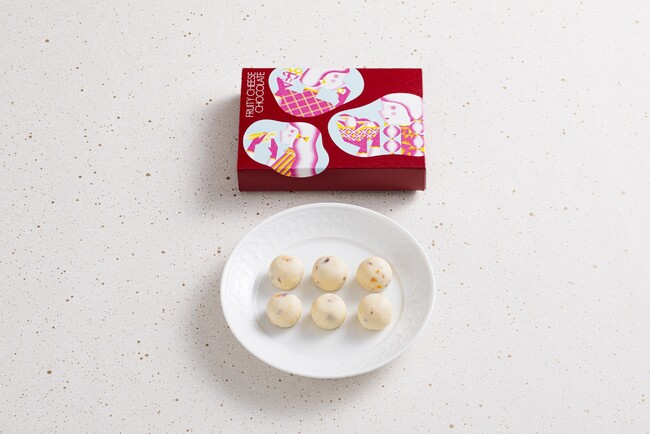 ホワイトチョコレートにチェダーチーズをブレンドしたほんのり塩味のあるなめらかなチョコレート。中からは、赤いクランベリーと黄色のマンゴーで華やかさと味わいの変化を楽しめるチーズスイーツ専門店のチョコレート。※新商品