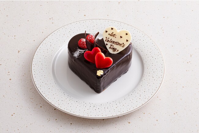赤いグラサージュが艶やかなハートのアントルメ。ムースショコラにクレームフランボワーズを閉じ込めた濃厚な味わいをお楽しみいただけます。※販売期間:上野・大宮 1/27~2/14、立川 2/10~14