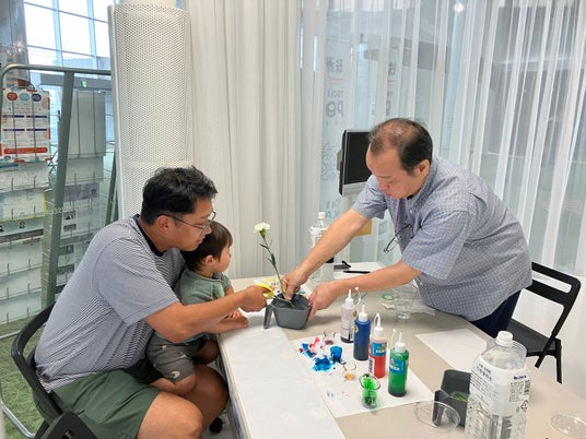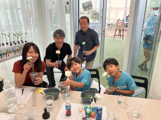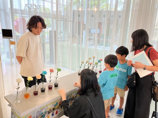 当社ブースでは、フラワーカラーミックス(切り花の染色)体験を出展いたしました。