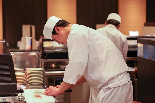 にぎり長次郎は、廻転寿司店でありながらお客様の目の前で板前が寿司をにぎり、お客様とのふれあいを大切にしています。「活⿂廻転寿司にぎり長次郎」は郊外や住宅地に、姉妹店の「廻転寿司CHOJIRO京都」は主に商業施設や繁華街に立地し、セットメニューやお酒の品ぞろえなどを工夫することで、それぞれの地域でお客様に愛される店づくりを行っています。