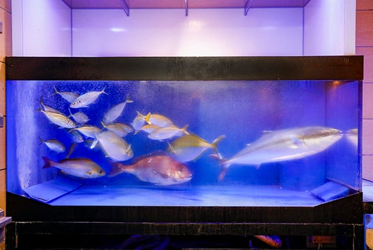 にぎり長次郎は、「いけす」からあげた活きのいい⿂をさばいたり、寿司をにぎったりする時のあふれる躍動感と、活気がありながら落ち着いてお食事いただける店内空間にこだわり、季節ならではの味わいを楽しめる旬の⿂介や野菜を活かしたメニューを提供することで、お客様から「旨い」の一言がいただけるよう技を磨き続けている、本物志向のグルメ廻転寿司店です。