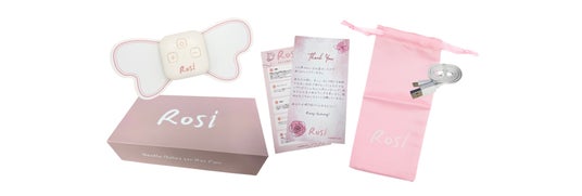 Rosiボックス/Rosiデバイス本体/バタフライパッド/USB Type- C充電ケーブル/クイックガイド/Thankyouメッセージカード/専用ポーチ