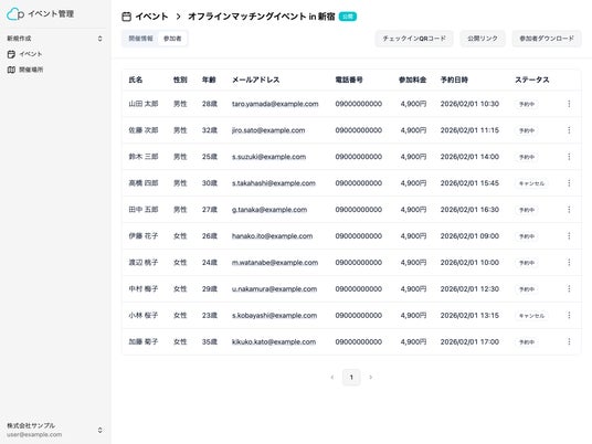 イベント参加者管理画面