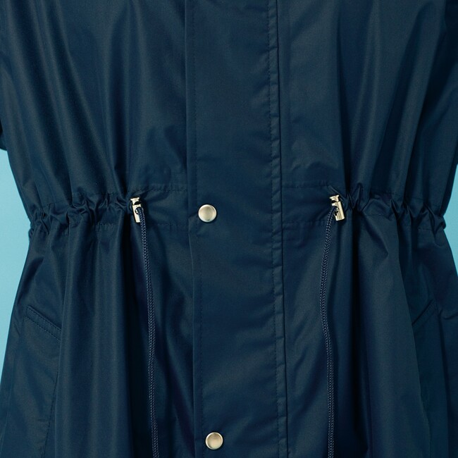 カジュアルな雰囲を漂わせるモッズコートタイプの一着。ゴム入りの袖口で流れ込む雨水をブロック。