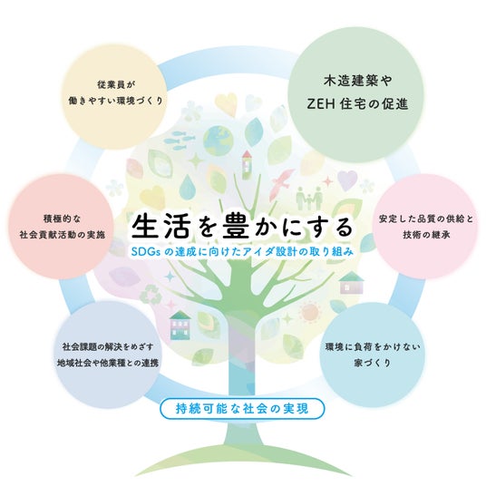 当社は住空間を提供する企業として、木造建築やZEH住宅の促進、安定した品質の供給と技術の継承、環境に負荷をかけない家づくりなどを通じて、地域社会とともに、持続可能な社会の実現に向けた活動を実践していきます。