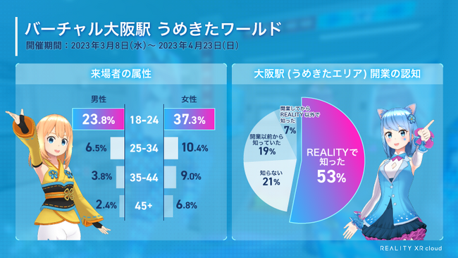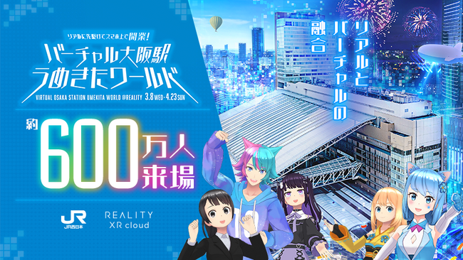 REALITY XR cloud株式会社(本社:東京都港区、代表取締役社長:春山一也 グリー株式会社100%子会社 以下「REALITY XR cloud」)と西日本旅客鉄道株式会社、株式会社JR西日本コミュニケーションズ、株式会社JR西日本イノベーションズ(以下「JR西日本グループ」)が実施した「バーチャル大阪駅 うめきたワールド」(以下「うめきたワールド」)に、「REALITY Worlds」の企業オリジナル空間では最多となる約600万人※1が来場しました。