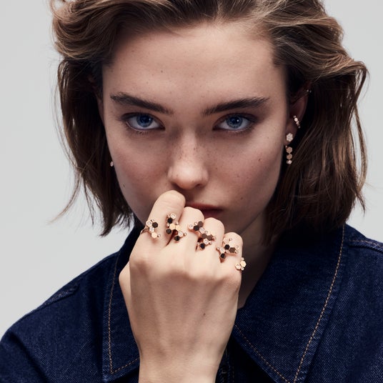 メゾンに深く縁のあるミツバチのモチーフを、現代的かつタイムレスなスタイルへ昇華させた「ビー ドゥ ショーメ」コレクション。鏡面仕上げが施されたハニカムモチーフは、知的な美しさと愛らしい輝きを湛え、コレクションを象徴するデザインとして人気を博しています。