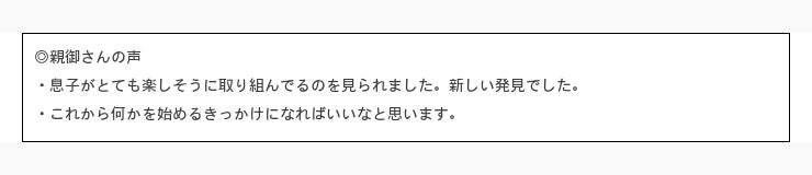 体験に応募したご家庭から実際に寄せられた声をご紹介します。