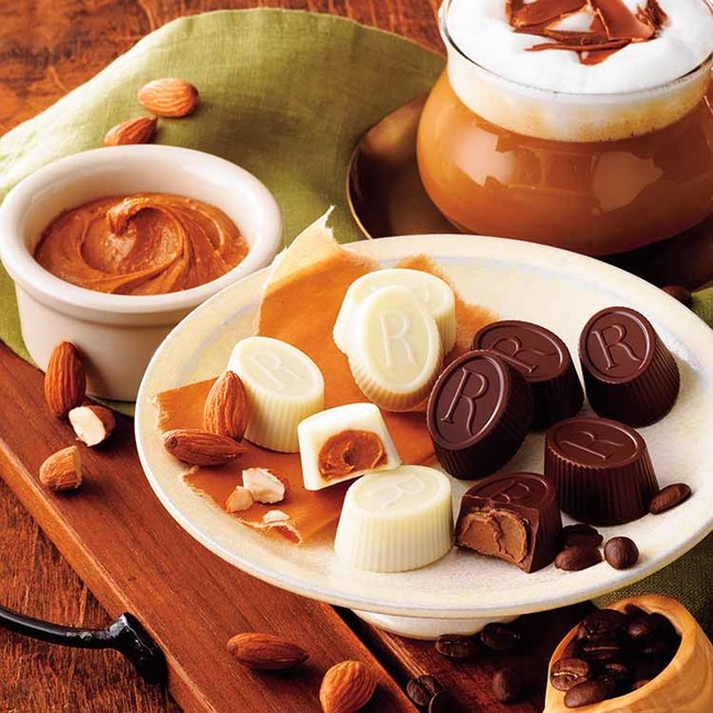 ロイズの頭文字"R"のカタチにおいしさを込めた、気軽に楽しめるひと粒ショコラの季節限定の味わい、[カフェモカ]と[ホワイトジャンドゥーヤ]をひと箱に。個包装もうれしいショコラを、プチギフトにもおすすめのボックスに詰め合わせました。