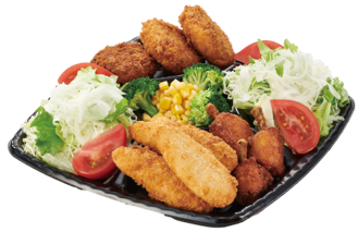 (宮メンチカツ×3、ささみフライ×3、骨付きチキン×3、ミックスサラダ、