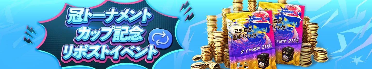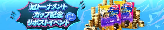 さらに、公式Xに掲載された「冠トーナメントカップ」開催告知投稿のリポスト数が20日(木)までに500件を超えた場合、全ユーザーにゴールドと「’25 S2ダイヤ確率20%選手パック」が配布されます。
