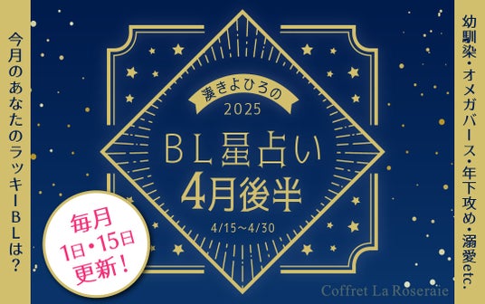 Coffret la Roseraie(カフレ・ラ・ロズレ)は、今月のオススメBLが分かるBL星占い、BL情報サイト「ちるちる」監修オリジナルBL特集、オススメBLを熱量高めに紹介するリスちゃんコラム、漫画家天城れの先生が描くBLオタクコミックエッセイなど、ここでしか読めないオリジナルコンテンツが盛りだくさんのBL情報ページ!
