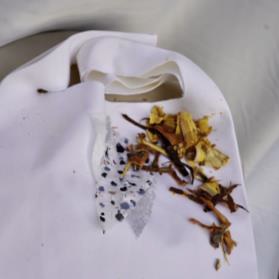 futashiba248が、茨城の農家から譲り受けた農業廃棄物(りんごの木、栗の鬼皮など)での草木染を家庭で体験できるキット。農家から譲り受けた廃棄物の可能性を広げると同時に、廃棄物を減らしながら、染めを楽しむことで、環境にも寄与できるこのキットは、今回のイベントで初公開となります。