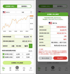 今般、本サービスのニーズの高まりを受け、より外貨積立をスタートしやすい専用アプリを開発いたしました。簡単に積立設定ができる申込画面のほか、シミュレーション機能により事前にお客さまに最適な運用方法をご確認いただけます。また運用状況もひと目で把握できるわかりやすいデザインとなっています。
