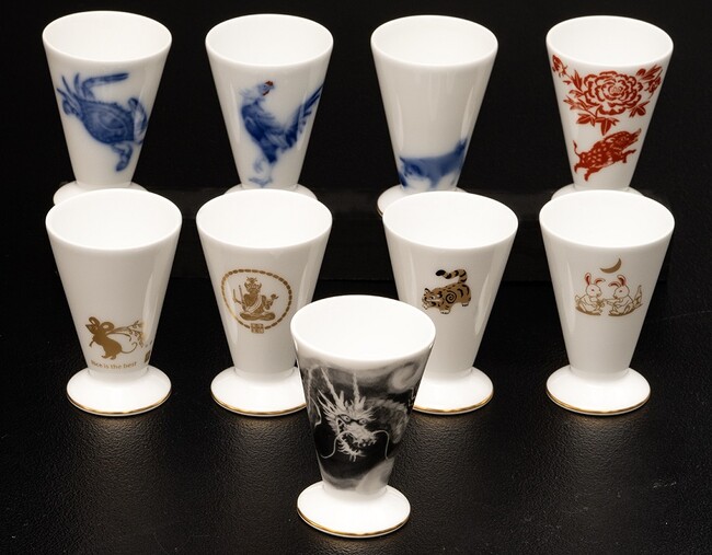 「日本酒が世界中で飲まれるようになったにも関わらず、洋食器の世界ではコーヒーや紅茶のカップばかり。日本を代表する大倉陶園だからこそ、日本酒を飲むための杯を一緒にゼロから作りましょう。」という提案から始まり、平成28年より、干支を題材にした酒器を生み出してきました。絵柄だけででなく、耐久性・口当たり・持つ手との馴染み・安定感・容量など、全てにこだわり抜いています。