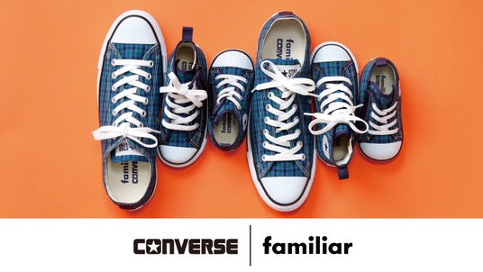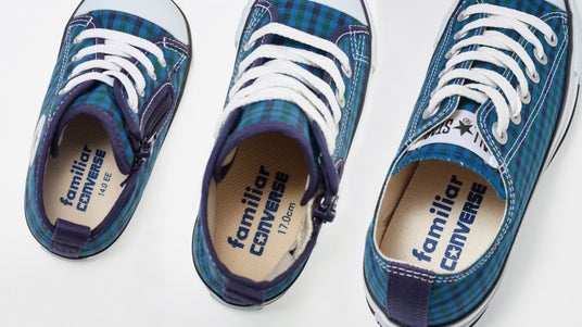 2024年11月に実施した初のコラボレーションでは、長年多くのお客様に親しまれてきた両ブランドのアイコンを掛け合わせ、赤系ファミリアチェックの「ALL STAR」が誕生。大人サイズを中心に初日から完売するサイズが続出し、再入荷待ちとなるほどの人気を博しました。第2弾となる本コラボレーションでは、12.0cm~27.0cmの幅広いサイズ展開はそのままに、青系ファミリアチェックが新たに仲間入り。ファミリアチェックは1950年代後半の登場以降、赤系・青系ともに根強いファンが多く、2色揃ってファミリアを象徴するデザインとして親しまれてきました。青系ファミリアチェックの登場を待ち望む声にお応えして、より幅広いラインナップにパワーアップいたします。