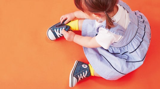 足首をホールドできるタイプで、まだ歩行が不安定なベビーの足をサポート。ゴムのシューレースは、ほどける心配のない縫い付け仕様です。