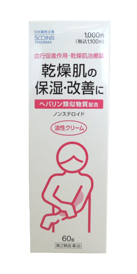 効果・効能:手指の荒れ、ひじ・ひざ・かかと・くるぶしの角化症、手足のひび・あかぎれ、乾皮症、小児の乾燥性皮ふ、しもやけ(ただれを除く)、きず・やけどのあとの皮ふのしこり・つっぱり(顔面を除く)、打身・ねんざ後のはれ・筋肉痛・関節痛