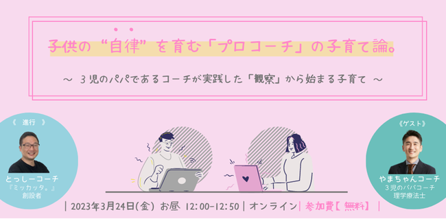 株式会社イノベーション(東証グロース 証券コード3970、本社:東京都渋谷区、代表取締役社長:富田直人、以下「イノベーション」)は、「子供の “自律” を育む「プロコーチ」の子育て論。」をテーマにした「女性の活躍推進」を応援するセミナーを2023年3月24日(金)に開催いたします。