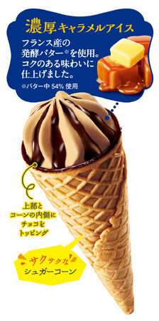 フランス産発酵バターを使用した風味豊かなキャラメルアイスとシュガーコーンを合わせた濃厚スイーツ