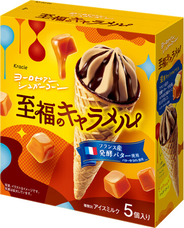 「ヨーロピアンシュガーコーン至福のキャラメル」は、フランス産発酵バターを使用した濃厚キャラメルアイスのヨーロピアンシュガーコーンです。